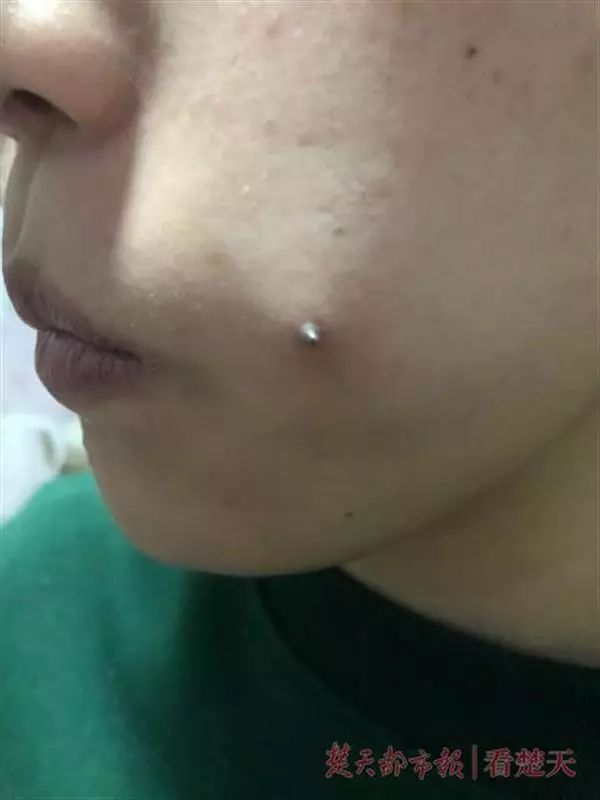 抱着“长出酒窝更美”的想法,小易委托这名工作人员,在她脸颊两侧各植入了一枚酒窝钉。然而没过多久,植入钢钉的位置就开始出现红肿和疼痛。