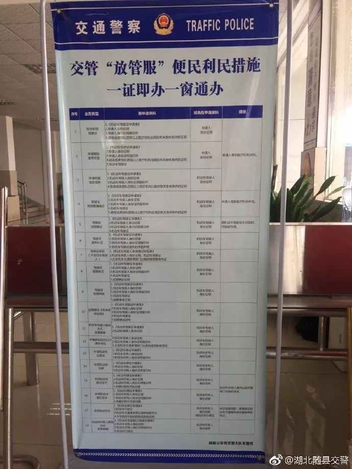 业务大厅优化窗口业务流程,开通了交管12123窗口扫码缴费;大型汽车查验区已从神农检测站移至长安4S店,所有大型汽车注册、转移登记时车辆查验、受理、选号、出证一窗式通办。