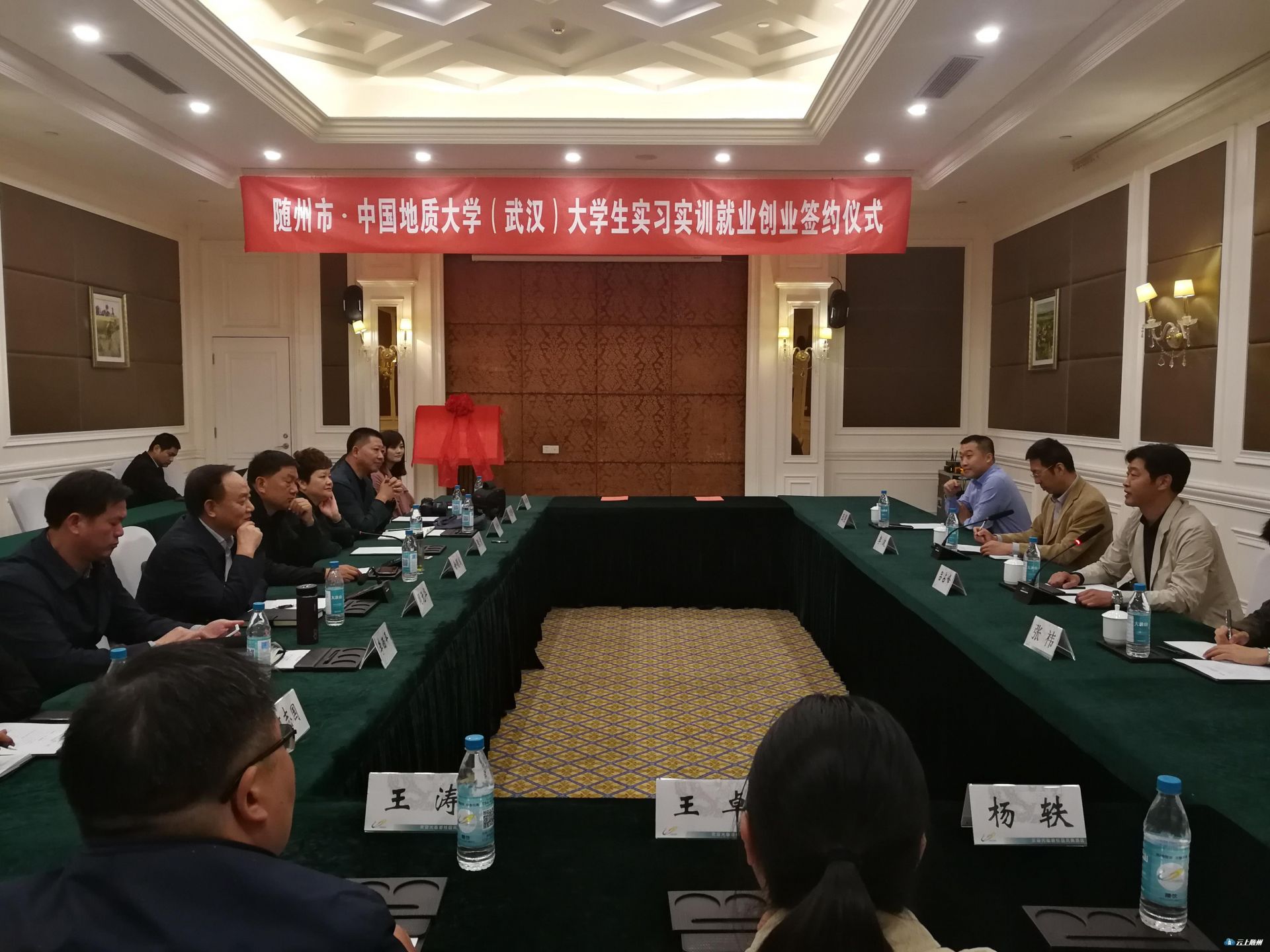 近日,中国地质大学(武汉)随州市大学生实习实训就业创业基地签约授牌仪式在随州举行,中国地质大学(武汉)相关领导及随州市市校合作办公室、国土资源局、人社局、经信委等有关单位和部门负责同志参加了此次活动。