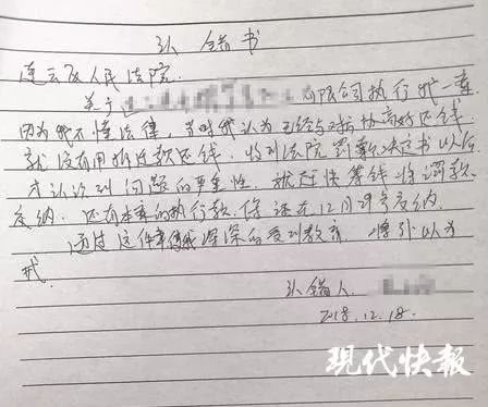 2018年12月4日,连云区法院向黄某下达罚款决定书,鉴于其恶意转移财产,规避执行,决定对其罚款10万元。近日,黄某来到连云区法院写下了认错书,对其非法转移财产的行为进行悔过,并主动缴纳了10万元罚款及全部执行款。