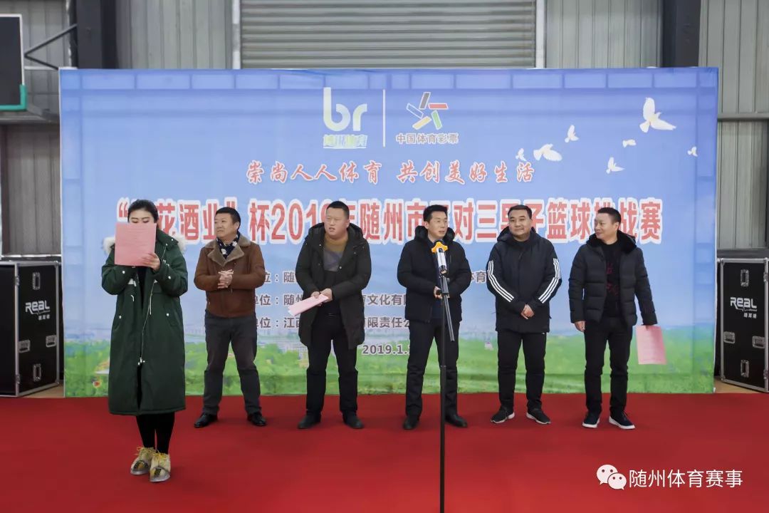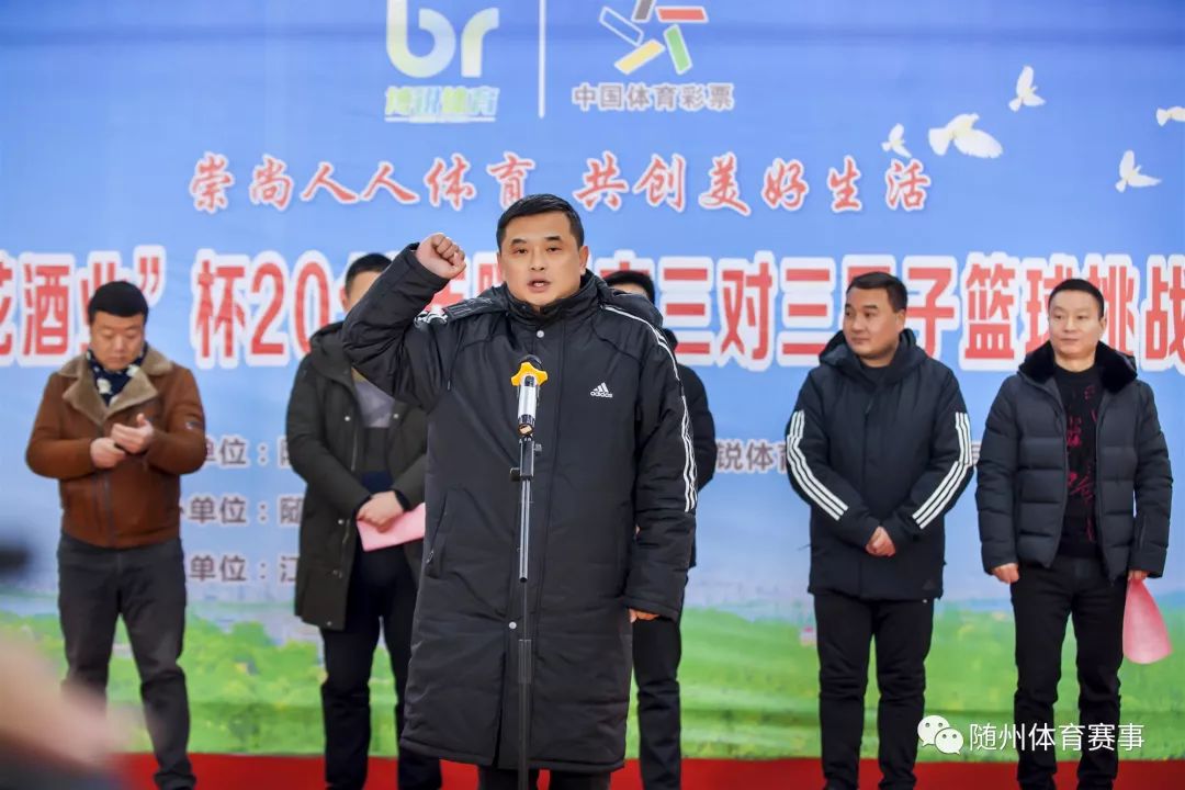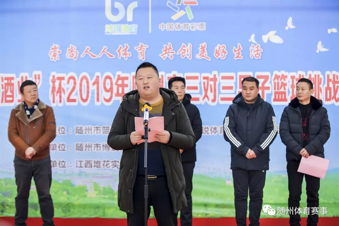 崇尚人人体育,共创美好生活,1月12日,“堆花酒业”杯2019年随州市三对三男子篮球挑战赛开幕式在博锐体育篮球馆顺利举行。