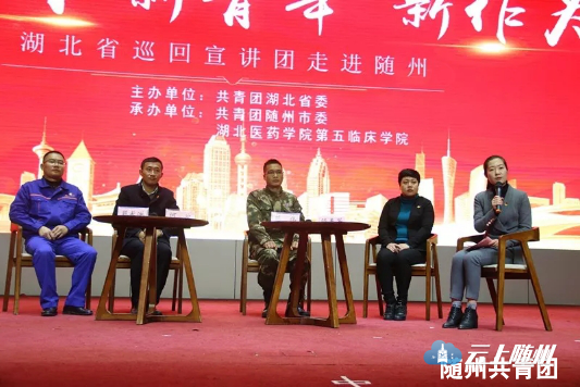 为深入学习宣传贯彻习近平新时代中国特色社会主义思想和党的十九大精神,进一步培育和践行社会主义核心价值观。12月6日,由团省委主办、共青团随州市委承办的“新时代 新青年 新作为”湖北省巡回宣讲团走进随州活动在湖北医药学院第五临床学院举行。