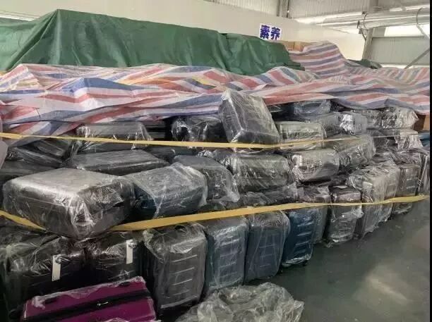 民警押着李某来到仓库,打开卷帘门后,发现400多平方米的仓库里堆满了箱包,大部分是假冒的新秀丽拉杆箱,还有其他假冒瑞士军刀、爱华仕等品牌的箱包。