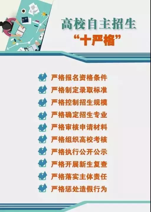 近日,教育部印发了《关于做好2019年高校自主招生工作的通知》,从招生政策、招生程序、加强监管等方面提出了规范高校自主招生的“十严格”要求,进一步增强高校选才的科学性和公平性。