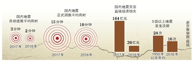 记者从会上获悉,2018年,我国地震监测预报预警能力明显提高。会议工作报告指出,去年,我国地震监测覆盖率进一步提高,在川西、西藏新建测震台110个。地震速报时间进一步缩短,国内地震自动速报平均用时从2017年的3分钟缩短到2分钟,正式测报平均用时从2017年的15分钟缩短到10分钟。