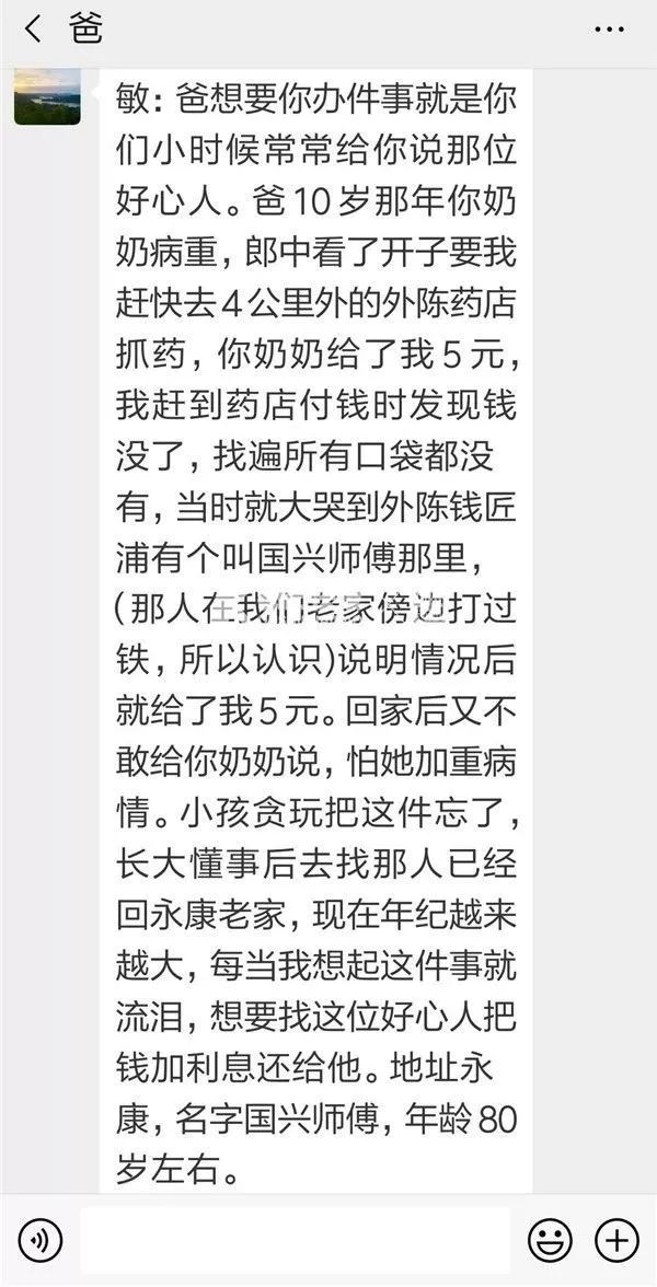这么多年过去了,石大伯一直对“国兴师傅”念念不忘,希望找到这位永康好心人,并把钱连本带利还给“国兴师傅”。