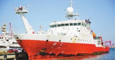 “科学”号科考船返回位于青岛西海岸新区的母港。张进刚摄/光明图片