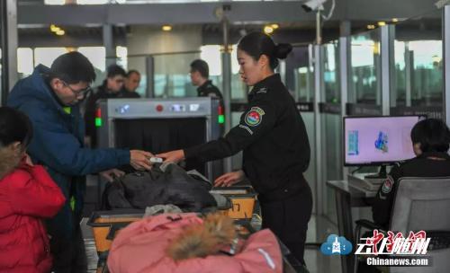 资料图:机场安检中心工作人员在安检旅客物品。中新社记者 于海洋 摄