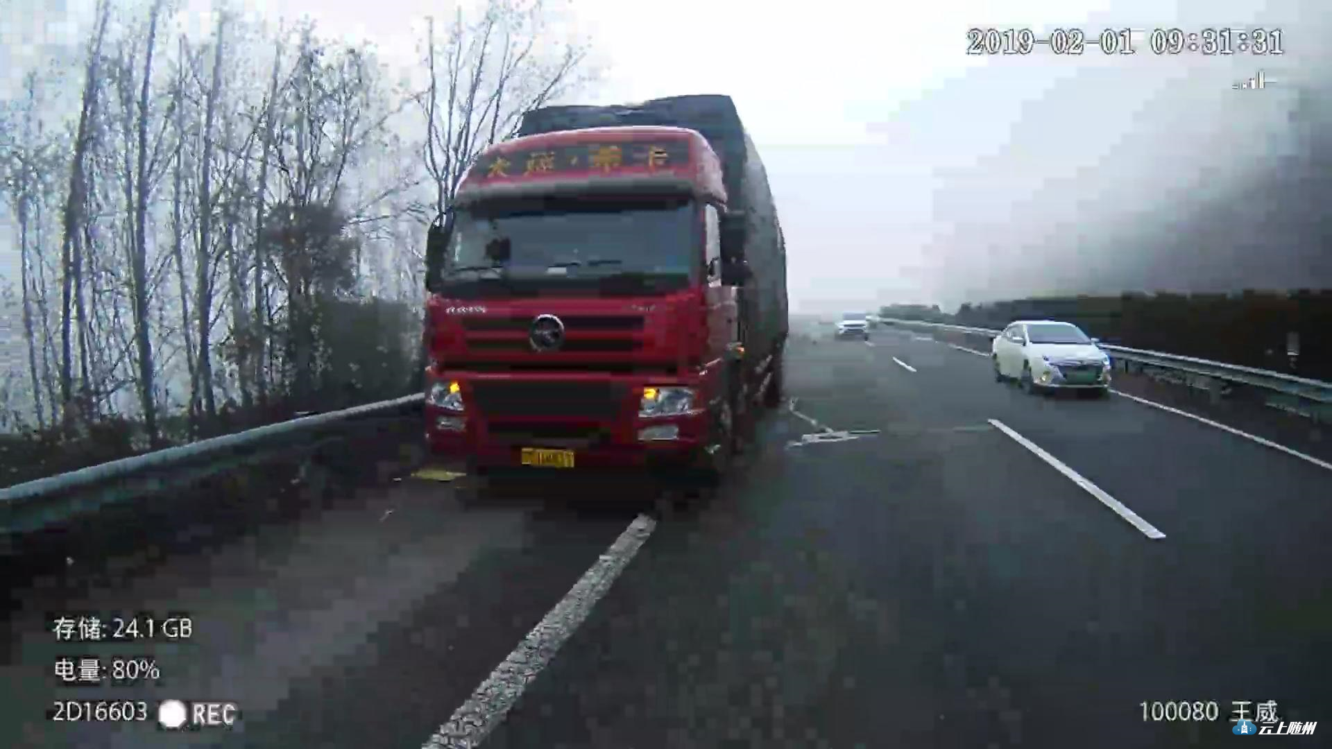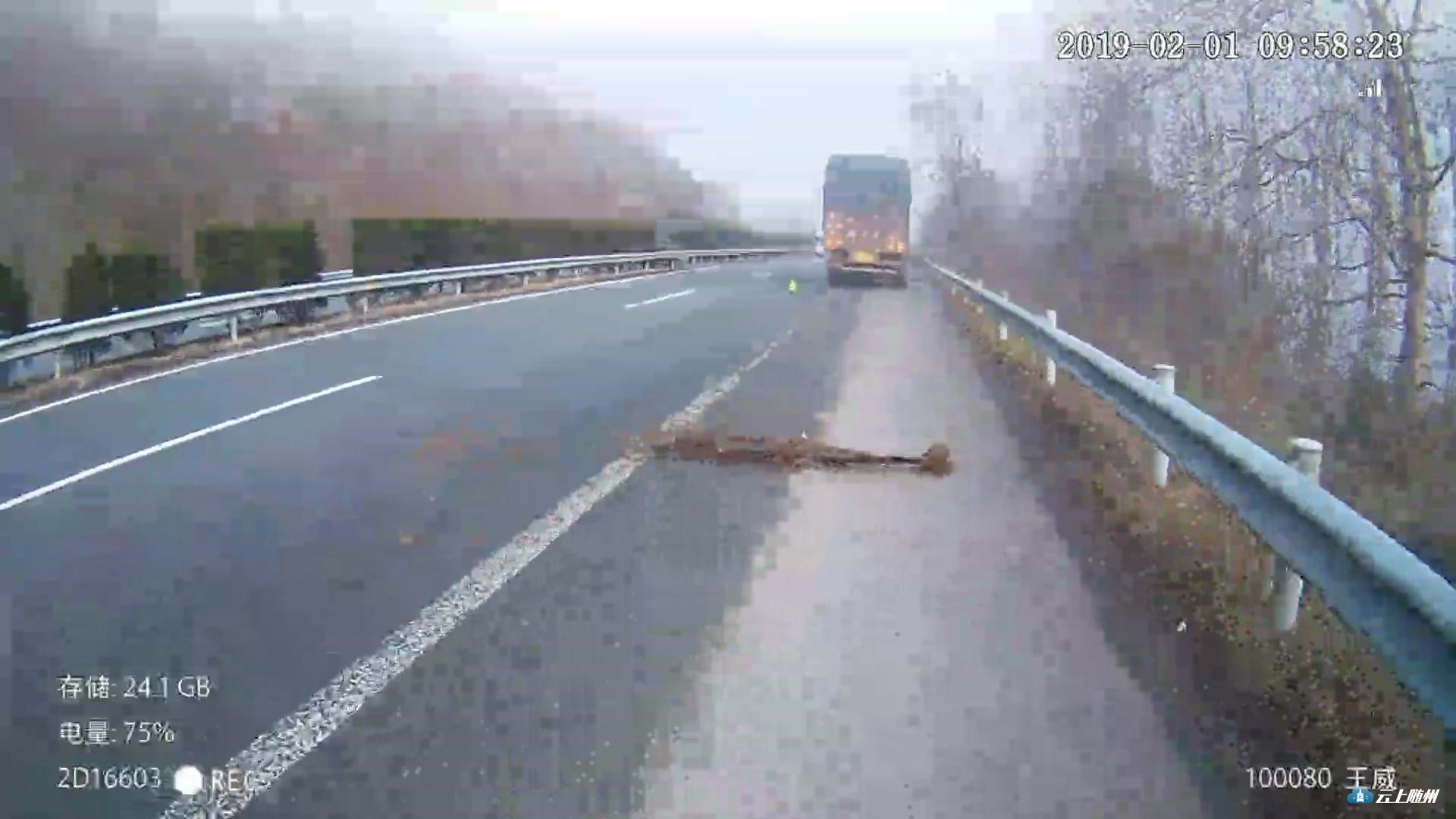 2019年2月1日(农历腊月二十七)凌晨,许广高速随县段出现大雾天气,到早上9点大雾依然没有散去,为保证人民群众能够平安回家过年,随县大队民警采取不间断巡逻,并通过鸣警笛、喊话等方式提醒过往车辆注意安全。当民警由南向北巡逻至柳林收费站附近,突然发现一辆重型货车停在路边,左侧车轮还骑压在行车道上,货车后方仅摆放了两根树枝,此时正值春运车流量高峰,高速上车辆川流不息,在大雾天气能见度低的条件下,现场情况十分紧急。