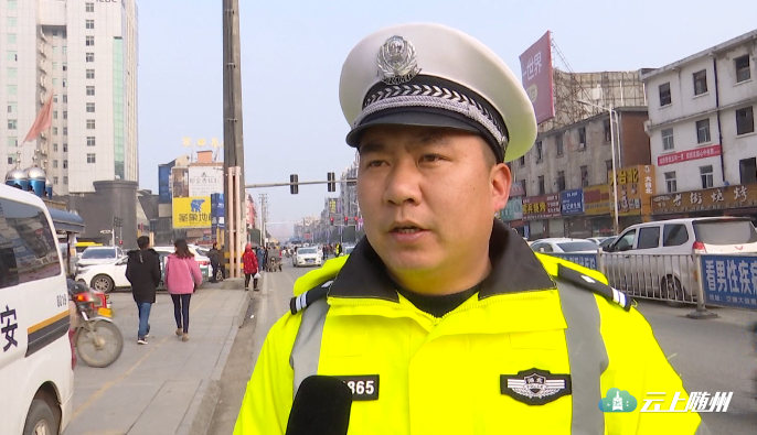 春节期间,面对车流量大、人流量大的实际情况,比如棉纺路口,车流量是平时的3倍,人流量是平时的10倍,道路交通压力巨大,我们随州交警支队全员在岗,放弃与家人团聚的机会,全力以赴,保障随州的交通畅通。
