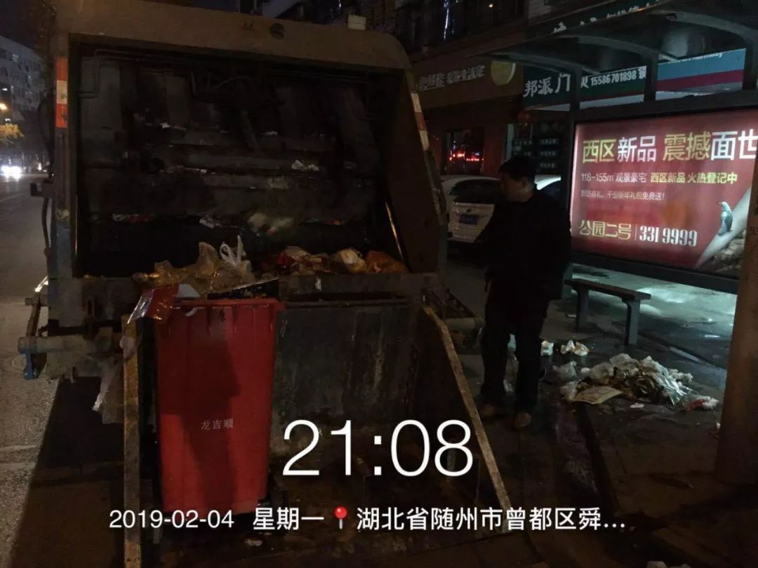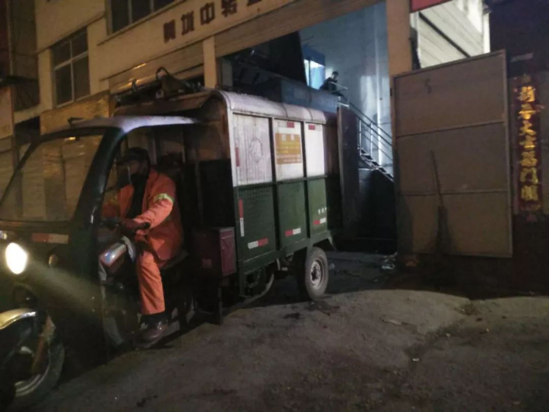 龙吉顺公司夜间清理垃圾箱,确保无溢满现象