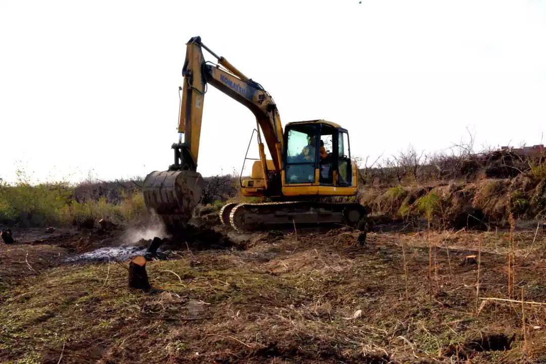 女儿墙、花格窗、朱漆大门、红瓦白墙……一座座整洁而富有乡土气息的农家小院错落有致,格外耀眼。村前的桃园里机声轰隆,几台挖机正在紧张作业。