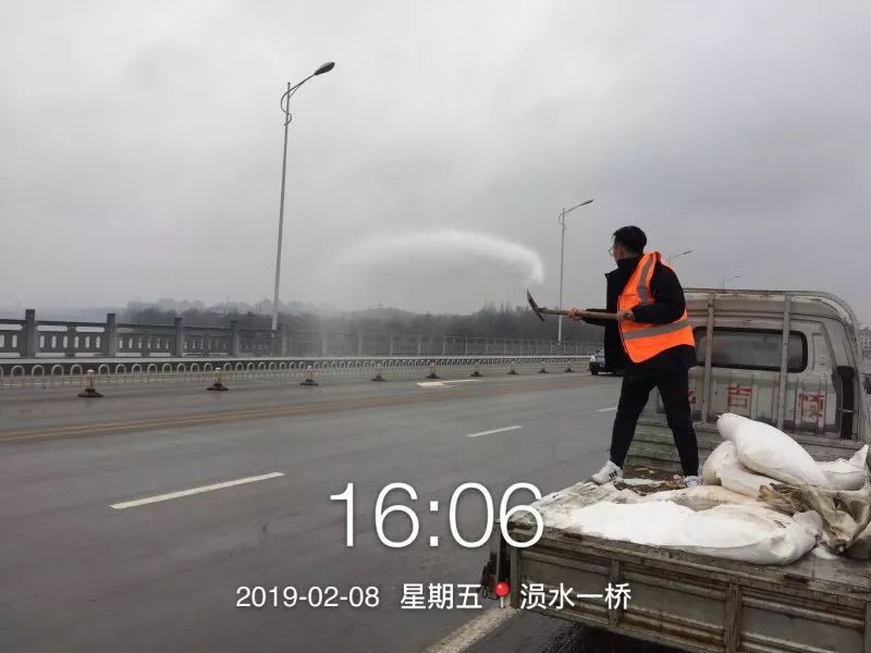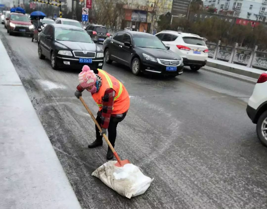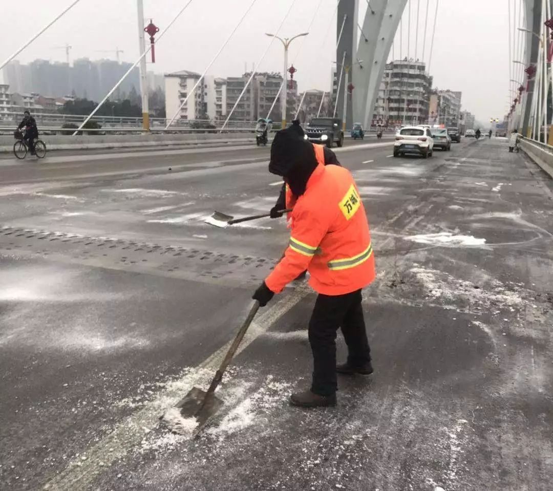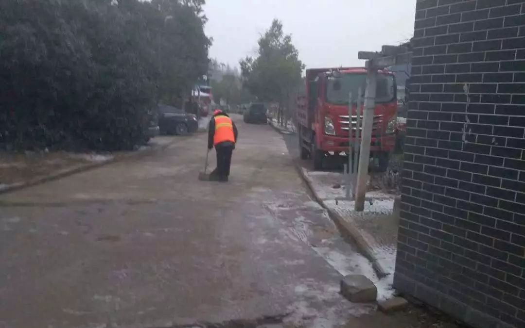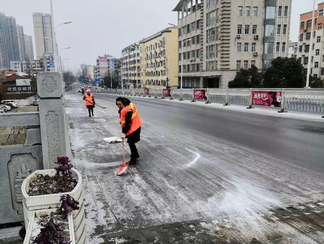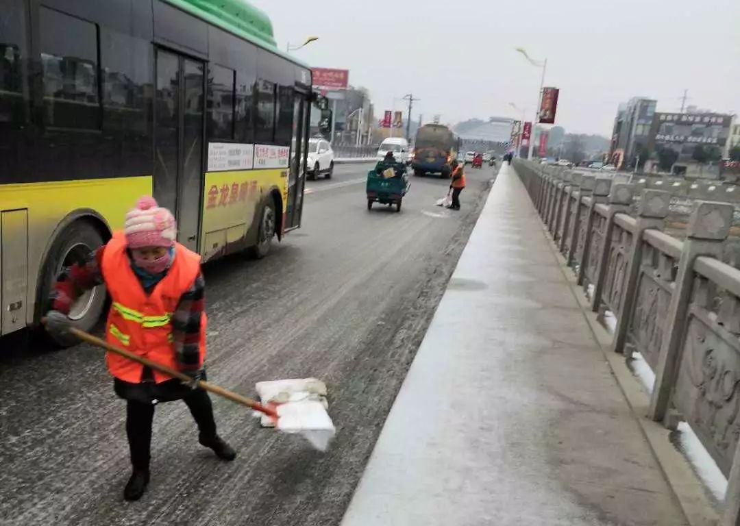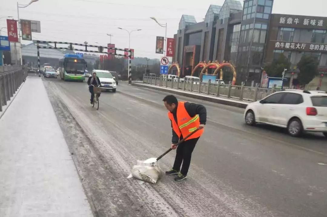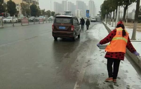 昨天,随州飘起雨雪。风雪中,当大家都在加快回家的步伐时,环卫工人在清扫完包保路段后,奔赴㵐水一桥、㵐水二桥、涢水一桥、青年路大桥、十字街人行天桥等地,清扫桥面积雪,铺撒工业盐,防止桥面结冰。尽管雨雪打湿了冬衣,雪花模糊了双眼,环卫工人坚守岗位到夜晚十点多,今天早上7点再次上街撒盐除雪。据介绍,目前已铺撒工业盐10余吨,储备工业盐10吨,全力确保市民出行畅通,过一个安全、祥和的春节。