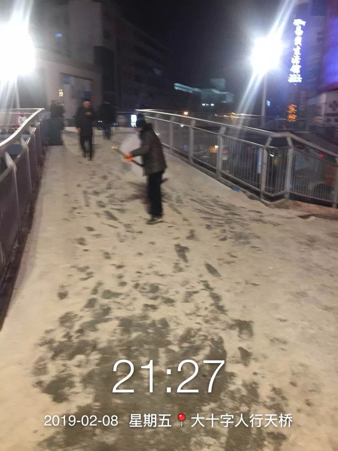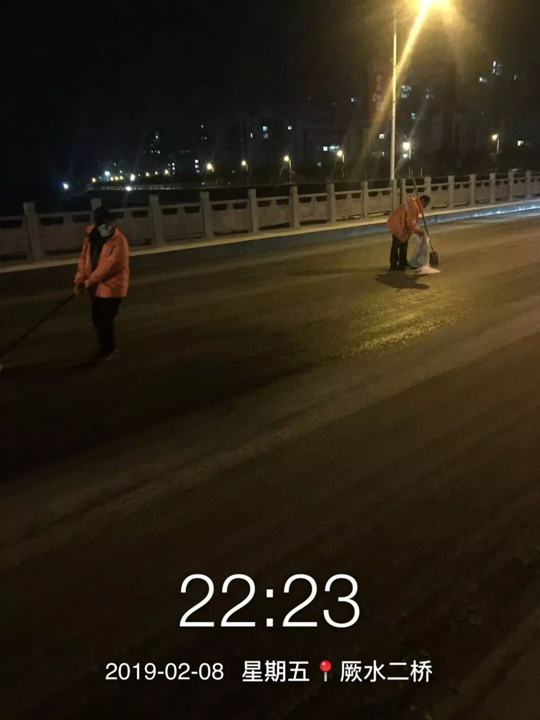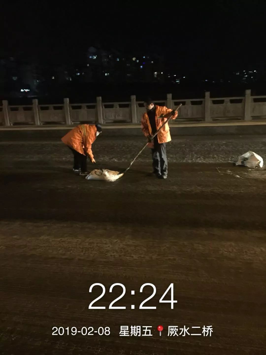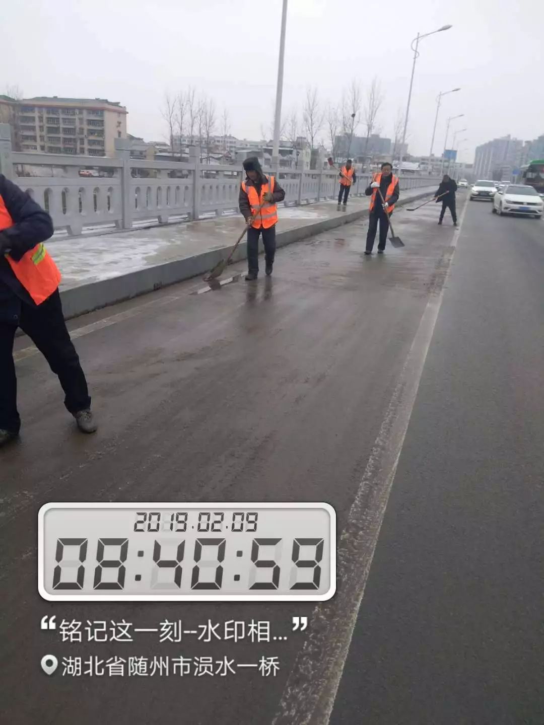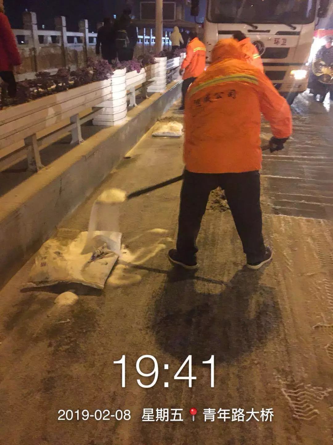 昨天,随州飘起雨雪。风雪中,当大家都在加快回家的步伐时,环卫工人在清扫完包保路段后,奔赴㵐水一桥、㵐水二桥、涢水一桥、青年路大桥、十字街人行天桥等地,清扫桥面积雪,铺撒工业盐,防止桥面结冰。尽管雨雪打湿了冬衣,雪花模糊了双眼,环卫工人坚守岗位到夜晚十点多,今天早上7点再次上街撒盐除雪。据介绍,目前已铺撒工业盐10余吨,储备工业盐10吨,全力确保市民出行畅通,过一个安全、祥和的春节。