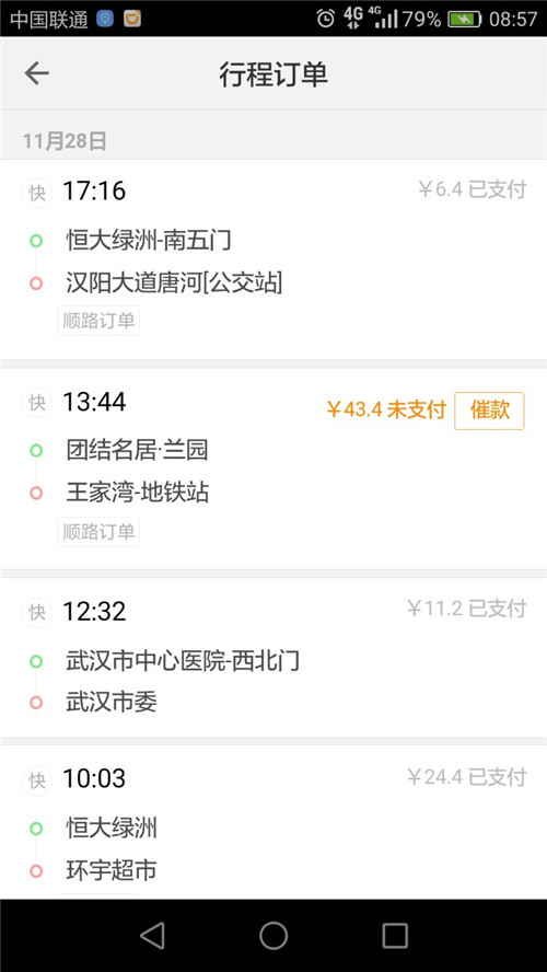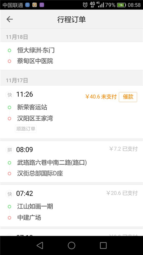 他介绍,去年3月,他开始跑网约车。近半个月来,他遭遇了两次逃单。11月17日上午11点多,在汉口新荣客运站,有人呼叫快车到汉阳王家湾,打电话过去询问详细地址,对方是名说武汉话的年轻女孩。