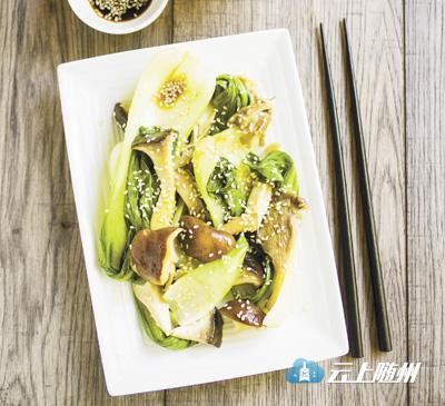 用料:香菇10个,油菜400克,姜1小块,蒜两瓣,泡椒1个,生抽10克,米醋5克,香油3克,蚝油5克,淀粉4克,水适量,植物油15克。