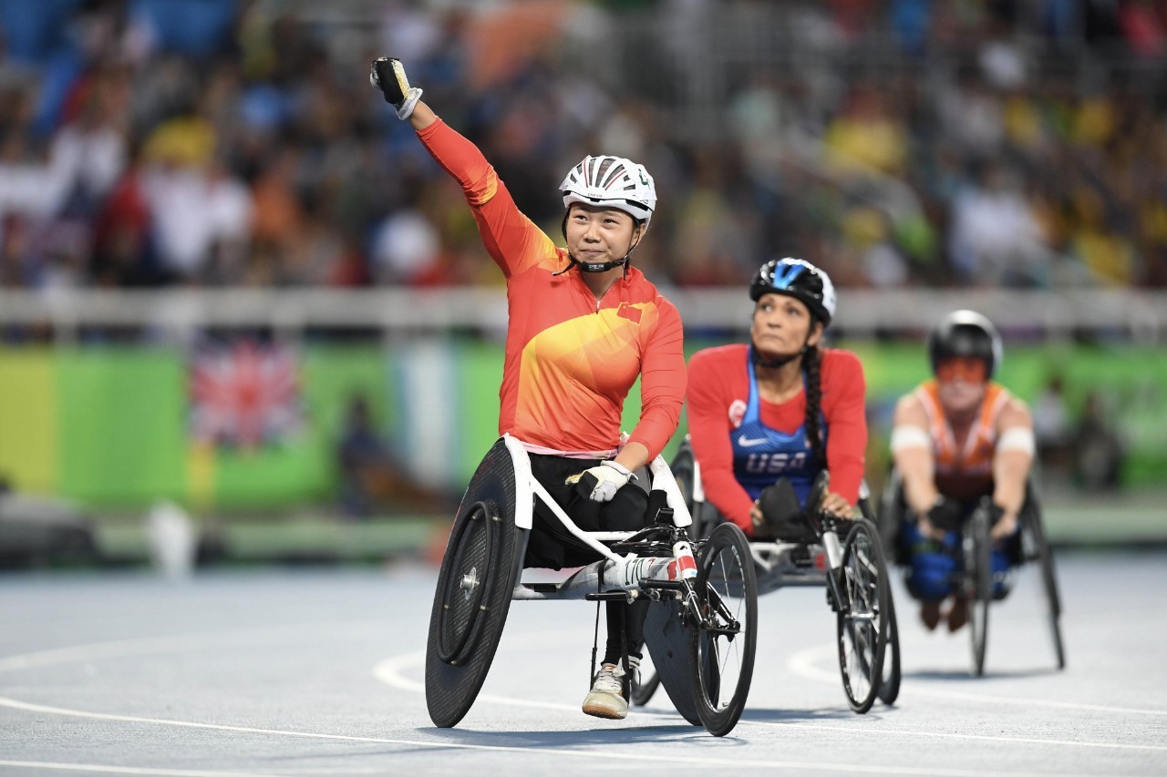 女子100米轮椅竞速T54级中国选手刘文君夺冠
