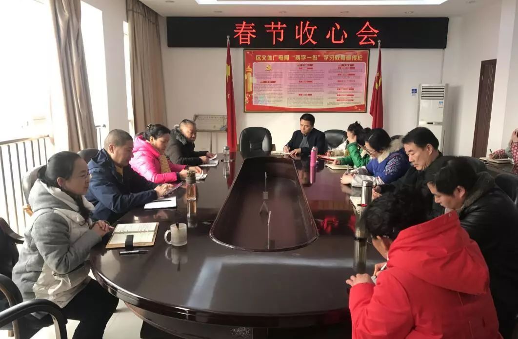 2月11日,区文体新广局召开2019年春节收心会,引导干部职工迅速调整心态,以饱满的热情和务实的作风,推动各项工作实现良好开局。