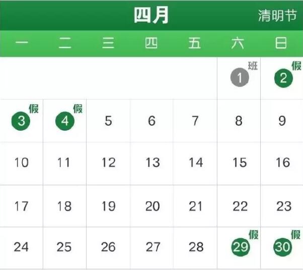 三、清明节:4月2日至4日放假调休,共3天。4月1日(星期六)上班。
