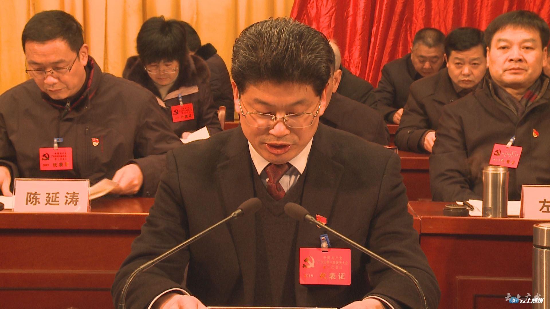 广水市委书记黄继军代表中国共产党广水市第八届委员会向大会作了题为《乘势而上 顺势而为 奋力推进“三城”建设高品质融合发展》的报告。报告共分四个部分,一、克难奋进的2018年;二、奋发有为的2019年;三、推进高品质融合发展;四、全面加强党的建设。