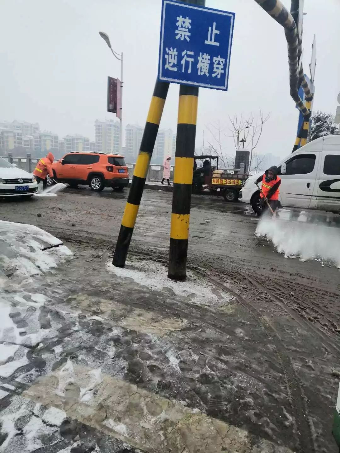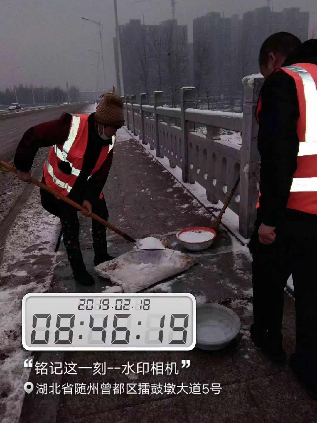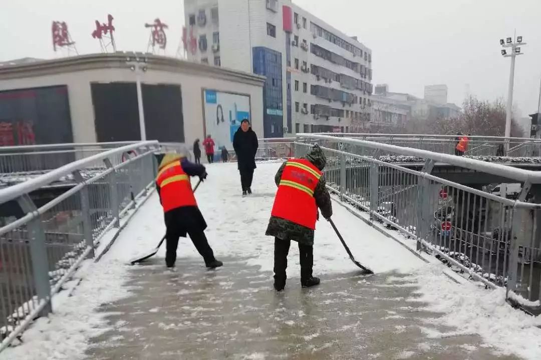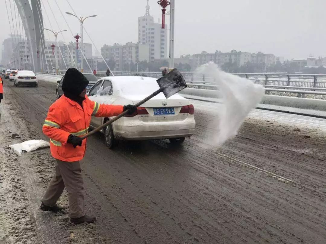 这次雨雪天气突如其来,除雪强度大,任务重,曾都区上下深入除雪保畅第一线,在桥梁、人行道等路段不间断地撒盐除雪,确保道路畅通。