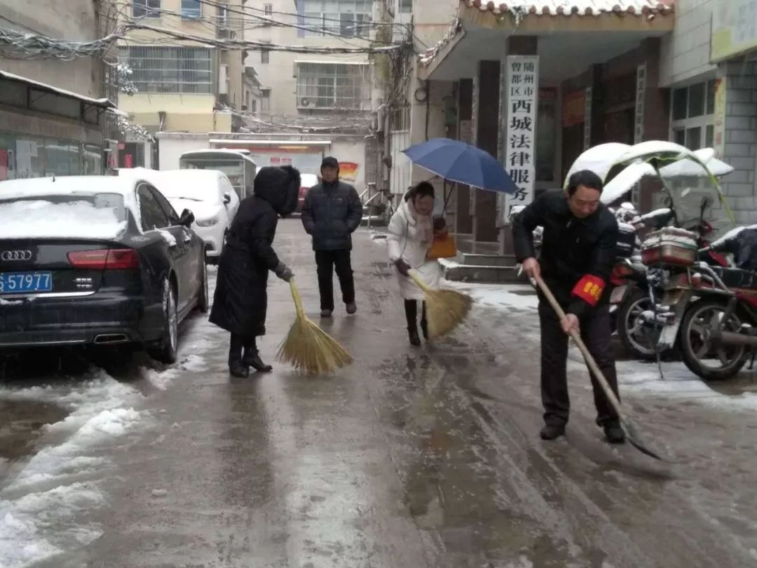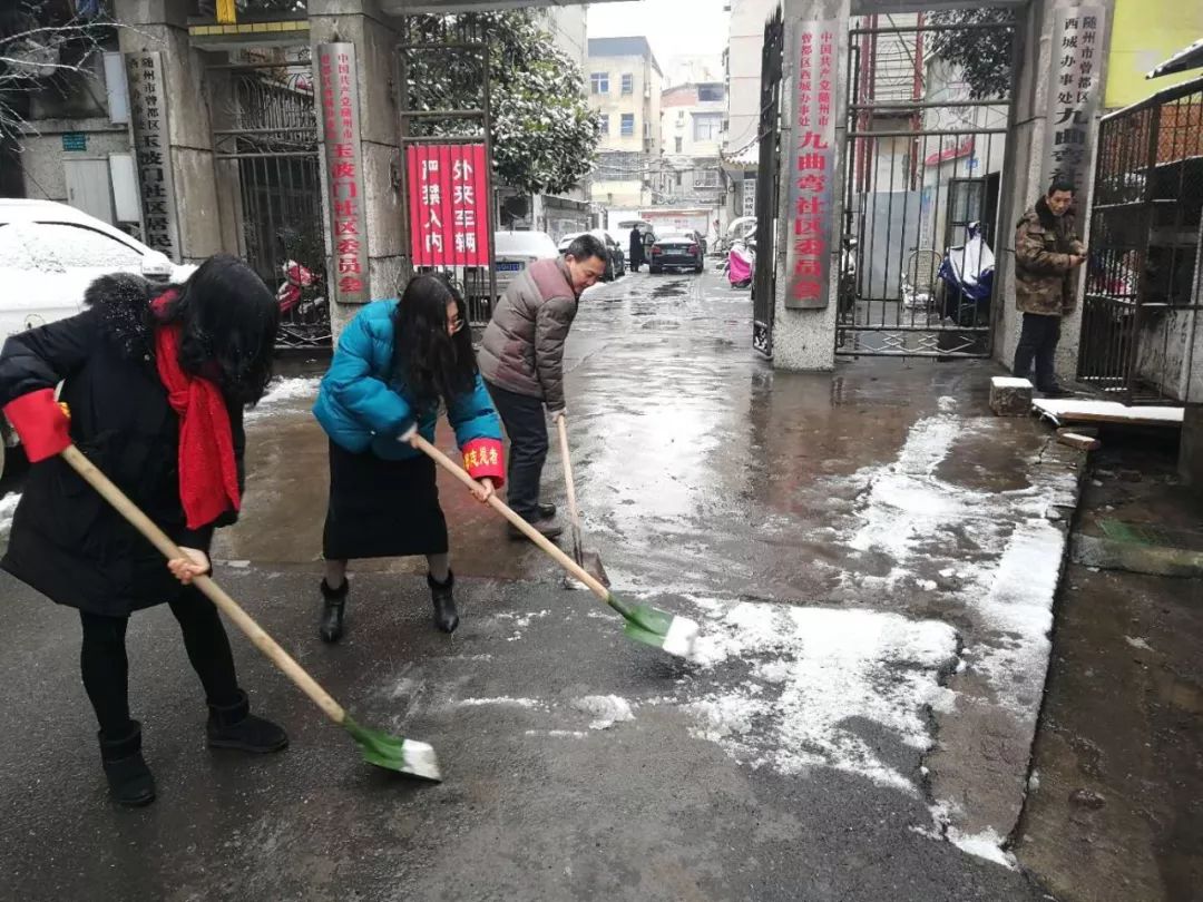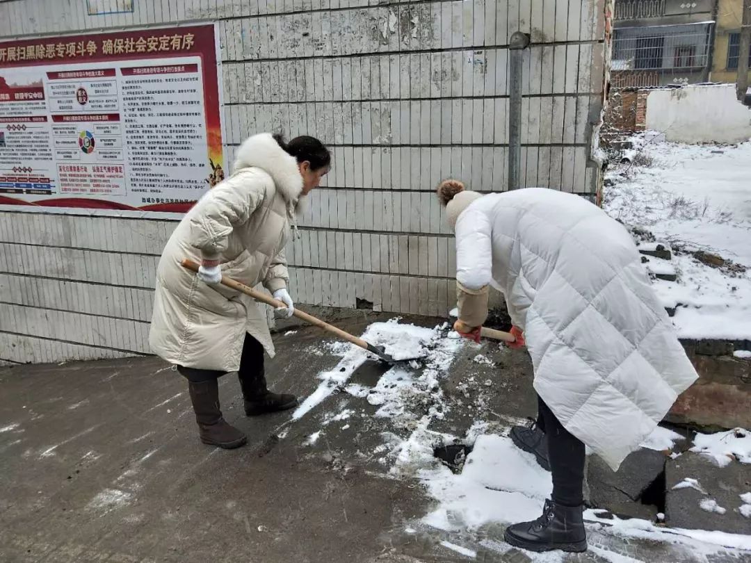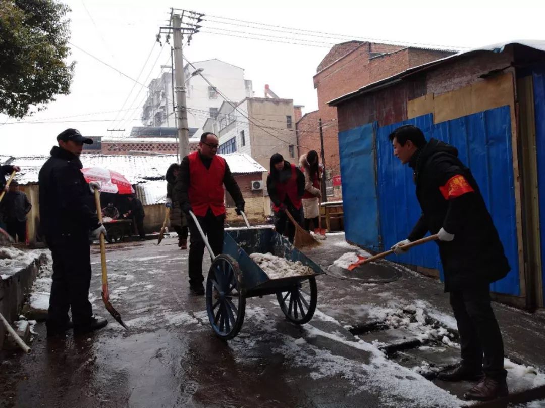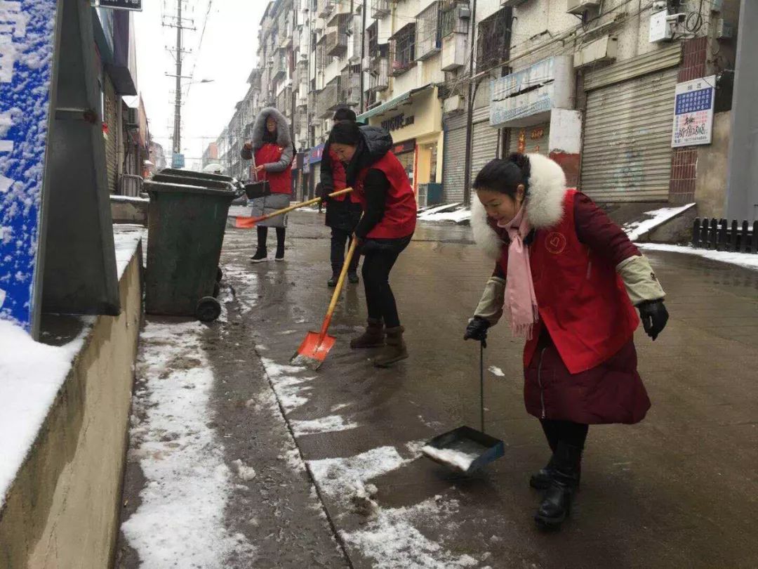 各社区组织全体干部、志愿者开展除雪活动,保障居民、车辆安全出行。