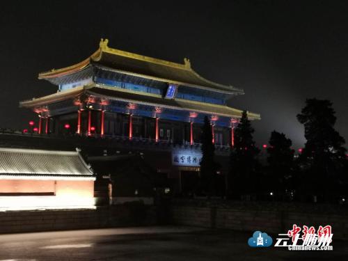 宫中的畅音阁戏楼持续上演着戏曲表演,神武门也被灯光点亮。