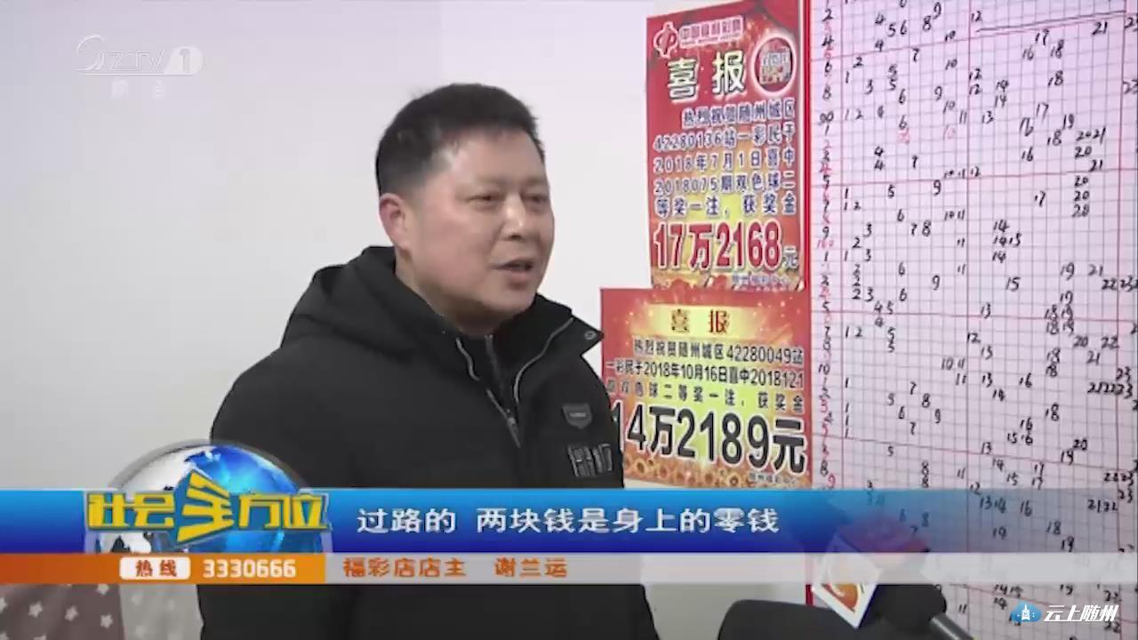 【采访】福彩店店主 谢兰运:最后两块钱,他说两块钱不用找了,给我机选一注,结果就中了。
