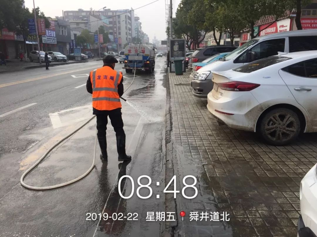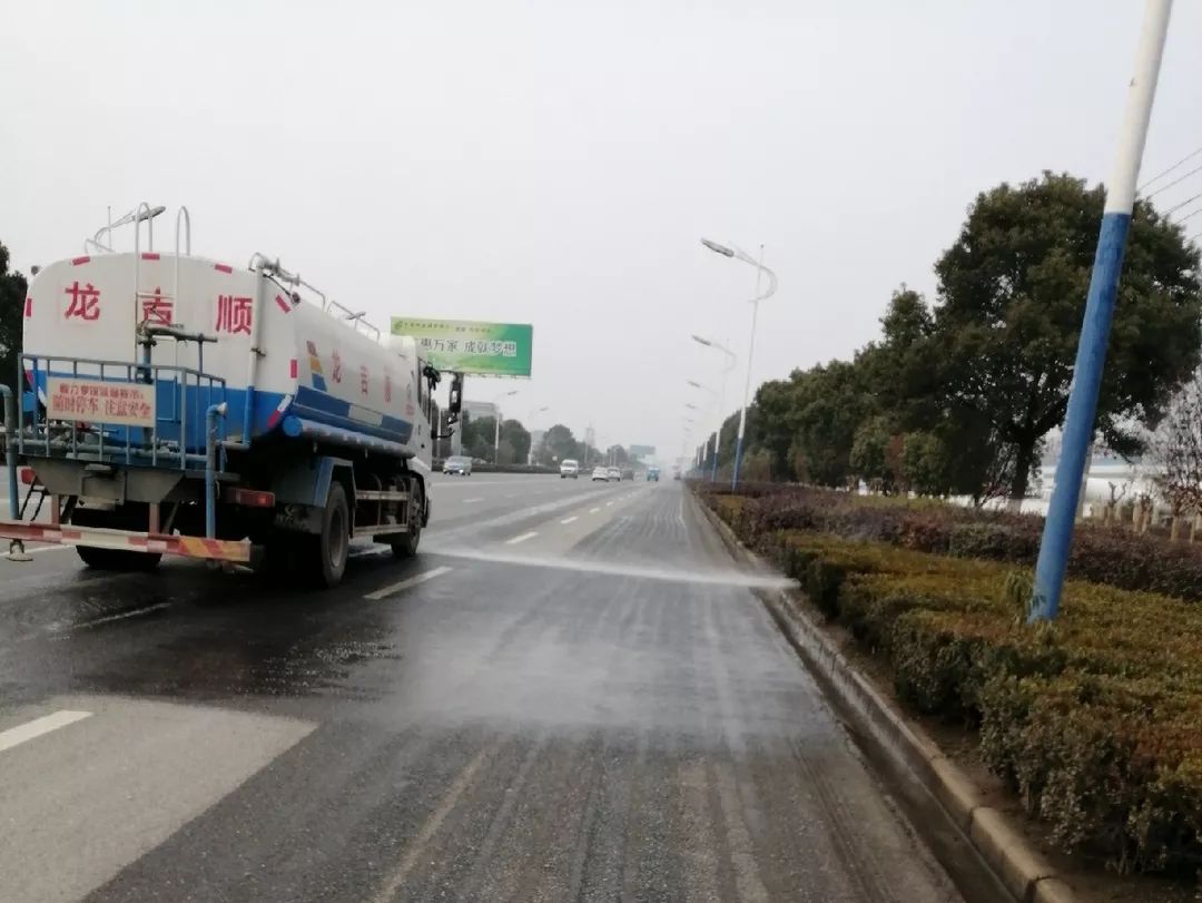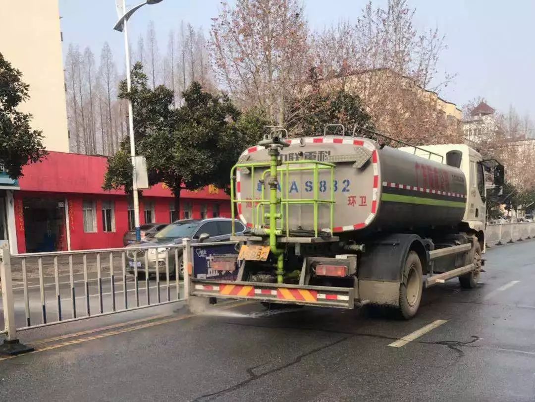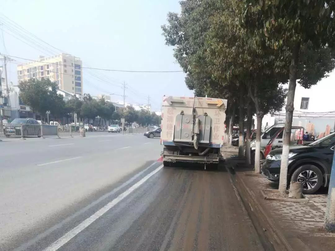 各环卫外包公司坚持全员上阵、全员保洁,清扫城区主干道和背街小巷,及时清运垃圾,出动洒水车除尘。