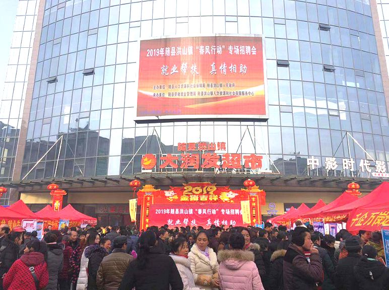 上午9点,由随县人力资源和社会保障局、洪山镇人民政府主办,随县劳动就业管理局、洪山镇人力资源和社会保障服务中心承办的2019年随县洪山镇“春风行动”专场招聘会在洪山镇大润发广场拉开帷幕。
