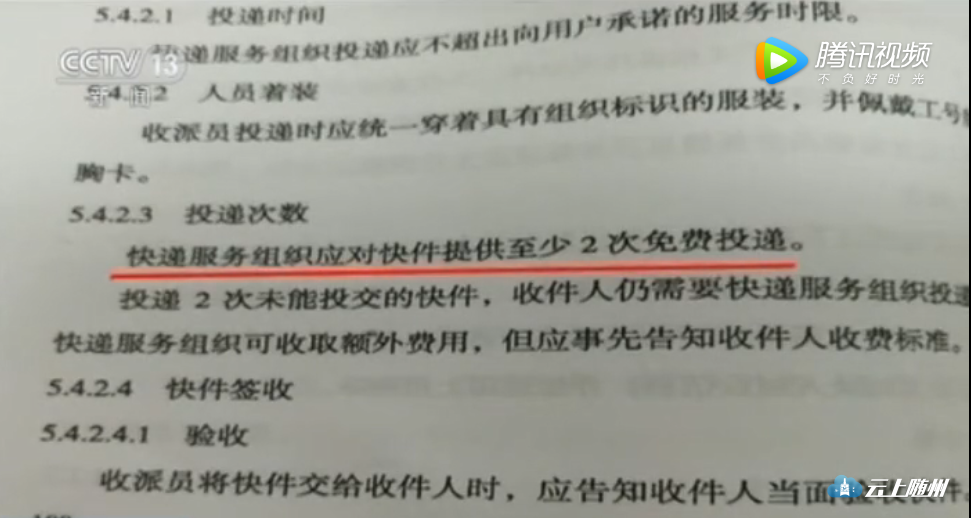 快递服务组织应对快件提供至少2次免费投递