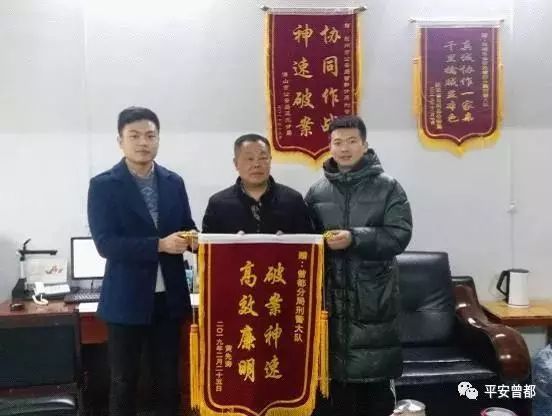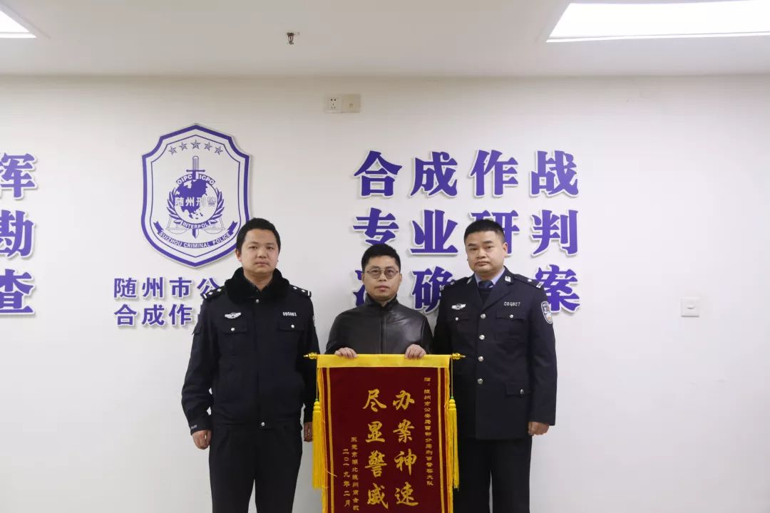 2月26日,曾都区公安分局刑侦大队、万店派出所分别收到受害人黄某送来的“破案神速 高效廉明”锦旗,黄某及其家属对公安机关以最快速度追回其巨额损失深表谢意。