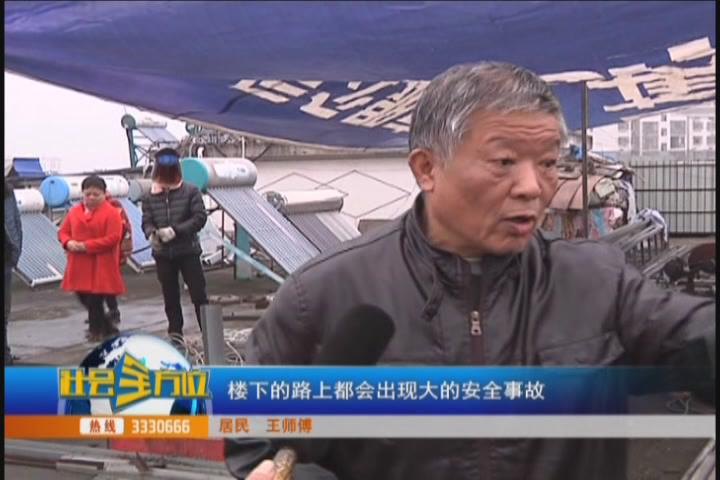 居民王师傅:你想这么大的广告牌,如果刮个大风,风阻力很大的,有可能把楼板都给掀了,而且我们是临街的房子,不光是我们这个楼遭殃,楼下的路上都会出现大的安全事故,这是我们最担心的。