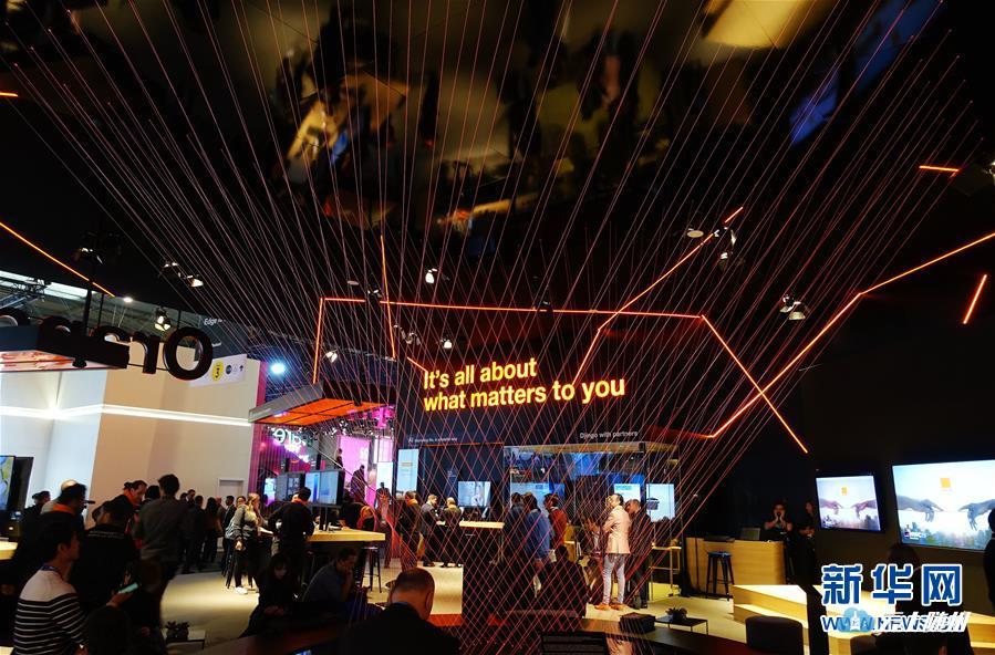2月28日,在西班牙巴塞罗那,人们在世界移动通信大会上参观电信企业Orange的展区。2019年世界移动通信大会28日在西班牙巴塞罗那落下帷幕。本届大会吸引了近11万名参观者和2400多家企业,而5G(第五代移动通信技术)是出现频率最高的“关键词”。新华社记者郭求达摄