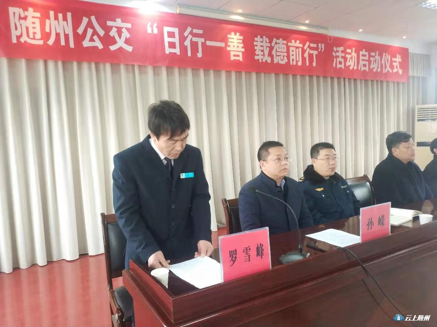 今天是学雷锋日,上午10点,随州公交“日行一善 载德前行”活动正式启动。活动上要求公交从业人员从身边小事做起,形成“知善、行善、向善、崇善、扬善”的价值取向,践行“善言、善行、善举”,不断提高人民群众的获得感和幸福感。