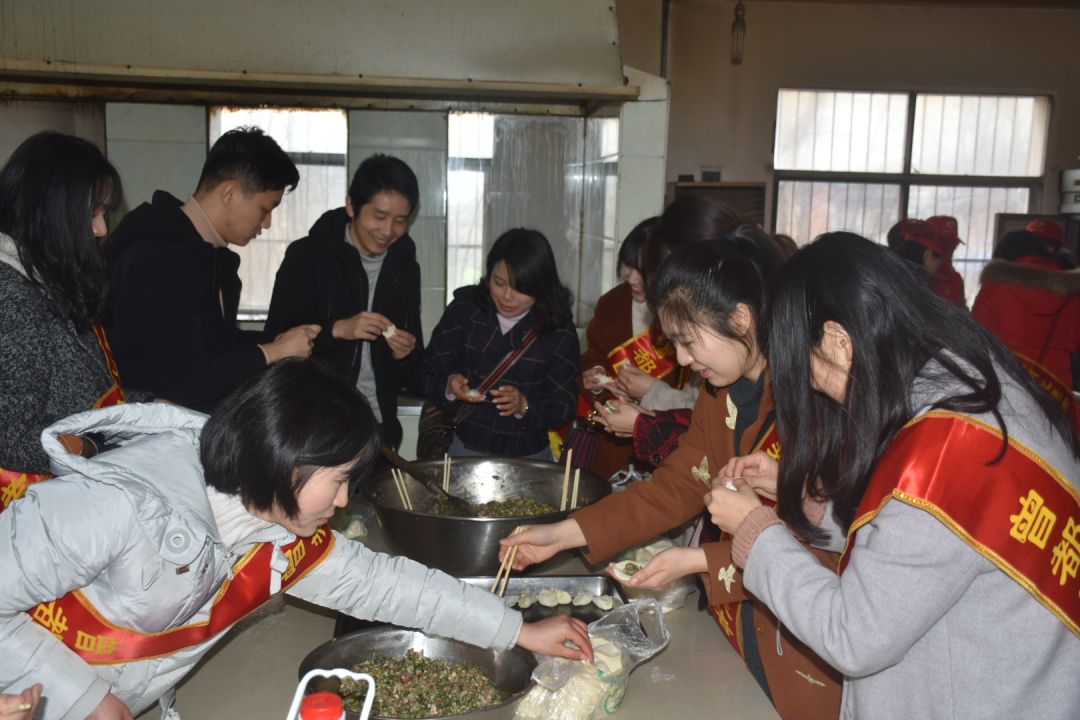 志愿者们来到老人的房间,陪老人下棋、拉家常、分享养生小常识等,同时帮助老人整理内务,并为老人包饺子,老人为志愿者服务竖起大拇指。