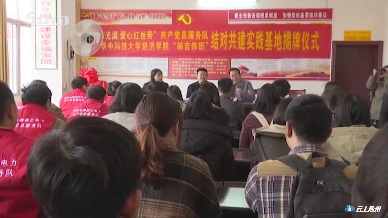 活动现场,“光满·爱心红丝带”服务队和华中科技大学经济学院“胡吉伟班”,在均川镇盛茂冲村,共同揭牌成立了结对共建实践基地,结对共建双方将通过加强沟通、紧密合作,充分发挥各自资源优势,积极为地方扶贫济困、乡村振兴等贡献一份力量。