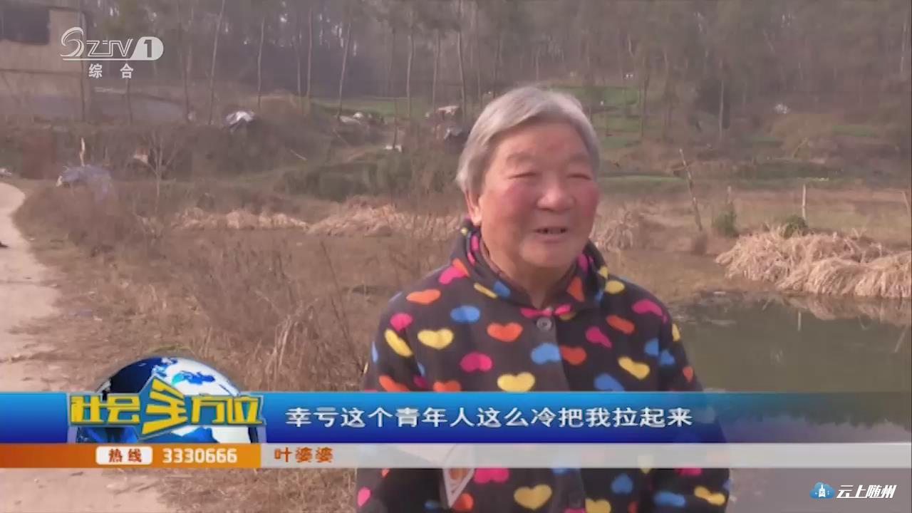 (采访:叶婆婆)一下栽到堰塘里面,然后就被泥巴陷着起不来了,因为都是泥巴,水都到脖子了,在往下陷就要喝到水了。幸亏这个青年人这么冷把我拉起来,他的衣服也打湿完了。