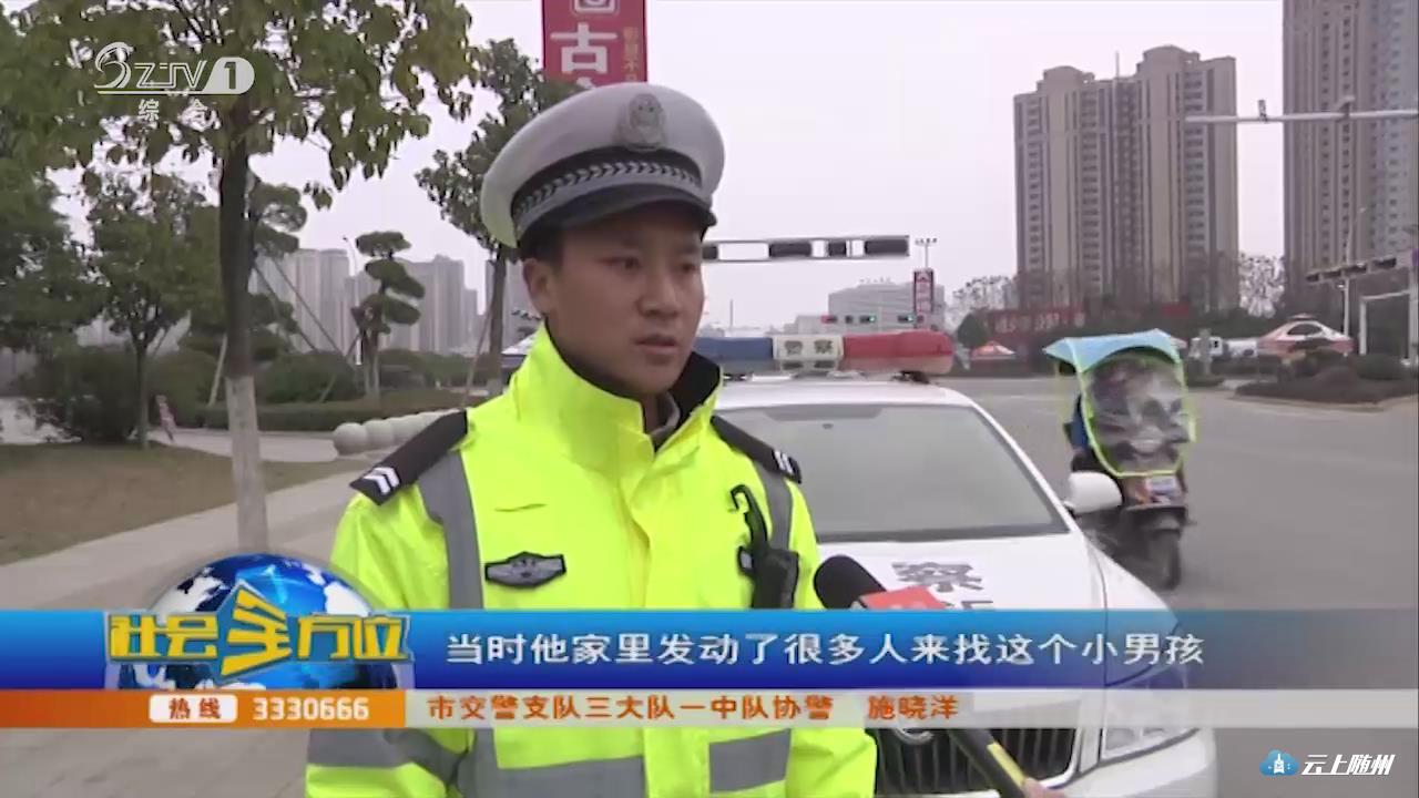 【采访】市交警支队三大队一中队协警 施晓洋:得知了小孩的姓名和家里的联系方式,电话打过去之后是他的父亲接的,我们就指定了一个地点,等他来接。