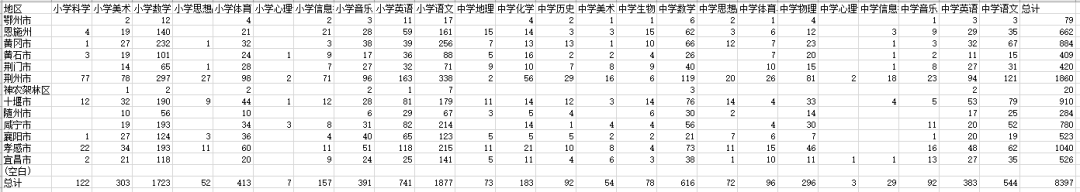 ↓湖北各地招聘名额表↓