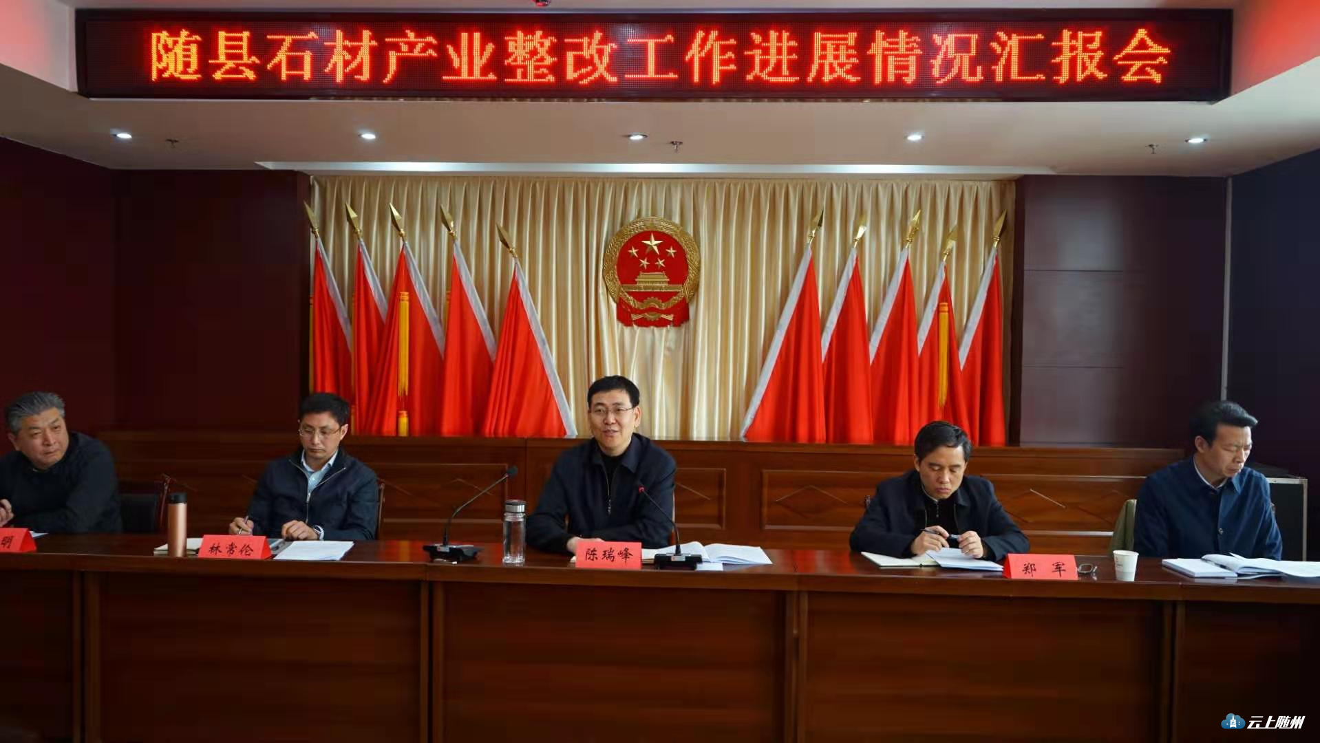 今天上午,市委书记陈瑞峰到随县专题调研随县石材产业整改工作进展情况,听取随县工作汇报,研究部署整改措施。