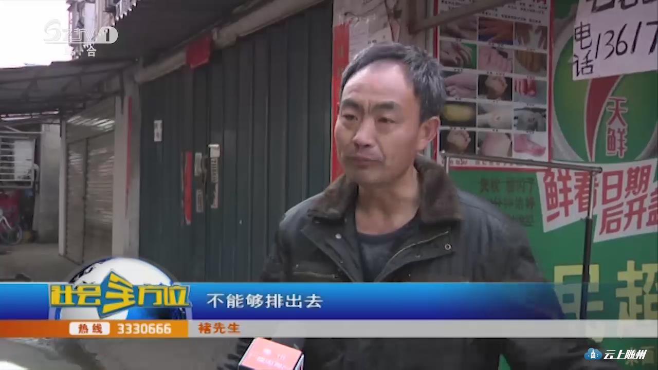 【采访】褚先生:从北到南这拐弯,管道从这栋楼房这出去了,这是一个主管道,重点是主管道堵塞了。