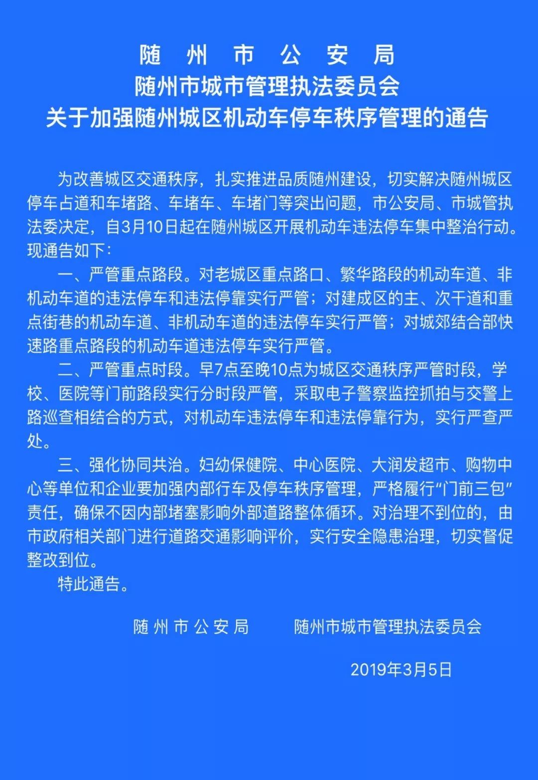 请广大驾驶人遵纪守法,按照规定正确泊车,有序停放,一起携手共建美好随州!