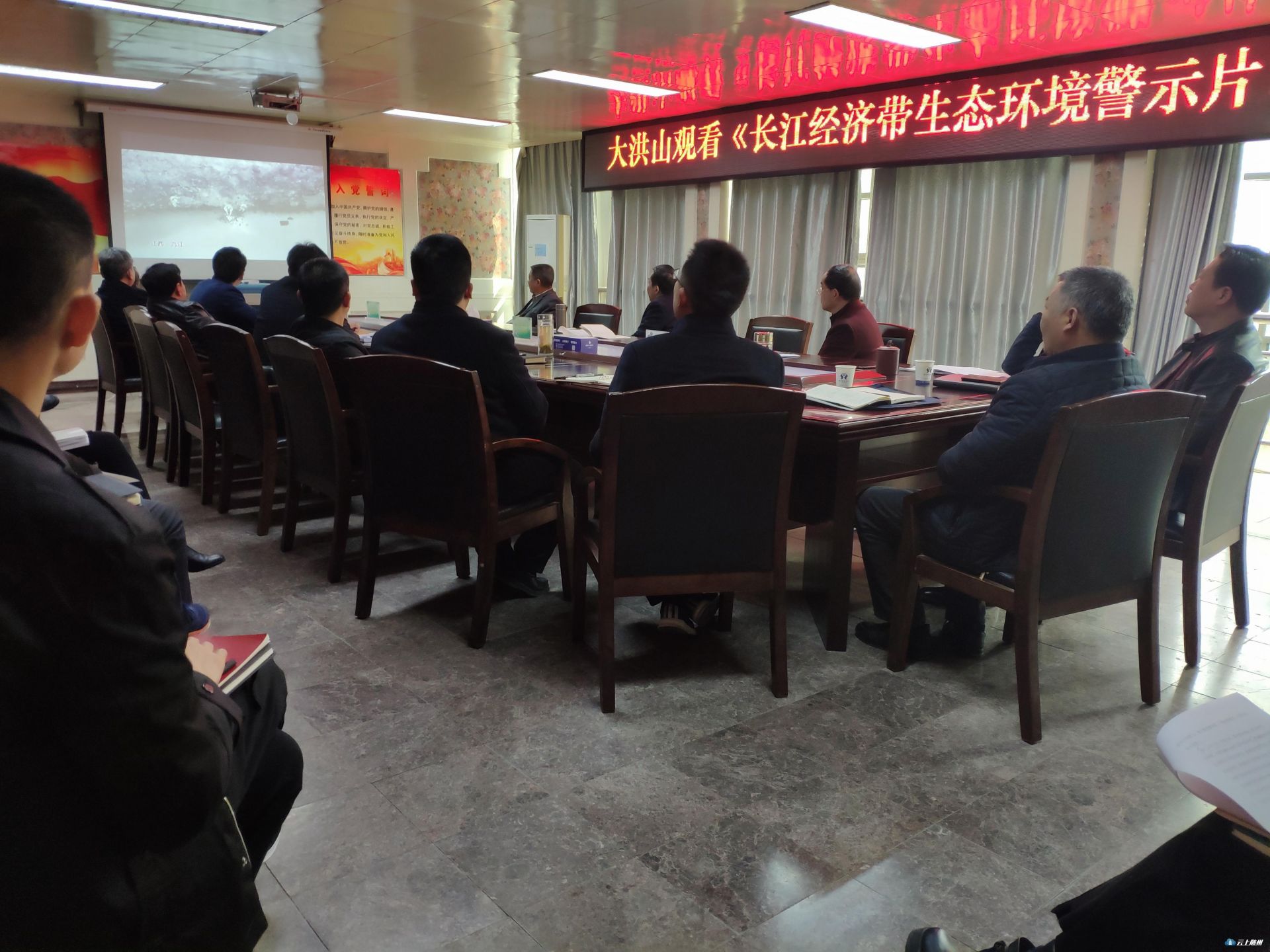 3月14日,大洪山风景名胜区集中组织观看《长江经济带生态环境警示片》。景区党工委书记汪海涛参加观看并讲话,景区其他在家领导班子成员、各相关单位主要负责同志参加观看。