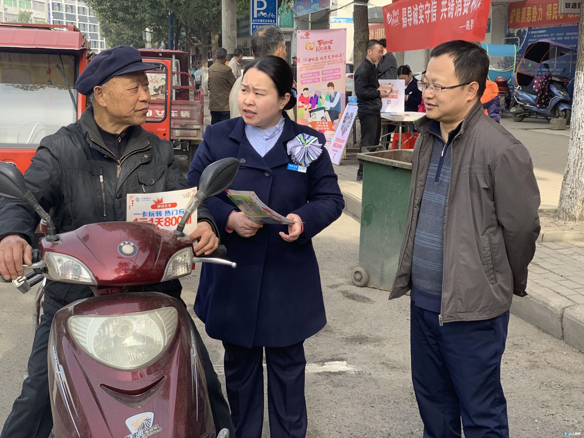 为进一步提高广大消费者自我保护意识,增强生产者、经营者履行社会责任,维护消费者合法权益,营造安全放心消费环境。随州移动积极参与随州市消委组织的“3.15”国际消费者权益日系列宣传活动。