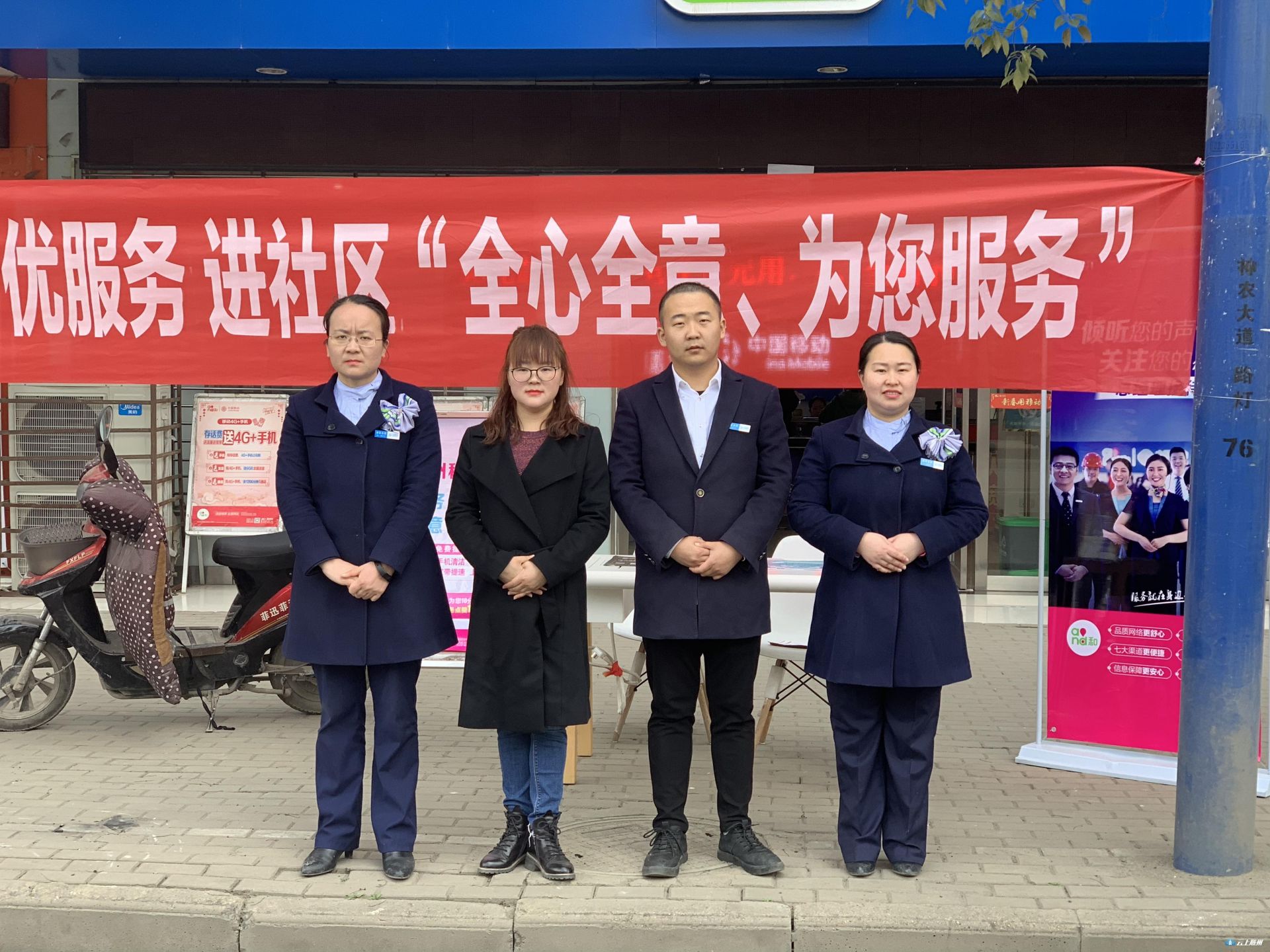 县公司经理带领志愿者为周边群众发放合家欢免费送宽带单页,并现场为客户演示合家欢开通方式,引导客户优化套餐资费,领取免费宽带,解决语音和流量不够用的质疑。志愿者们帮助用户关注“湖北移动”微信公众号,参与领取话费活动,让用户体验到微信营业厅查询办理业务的便捷性,体验移动服务无处不在。同时对来到现场反应宽带问题用户,为用户安装“和家亲”客户端,即可了解自家网络的情况,足不出户解决问题。
