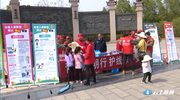 三月春暖花开,是广大市民逛公园放风筝、钓鱼的大好时节,供电公司组织员工在市民中开展安全用电宣传,提高市民防范触电的意识。