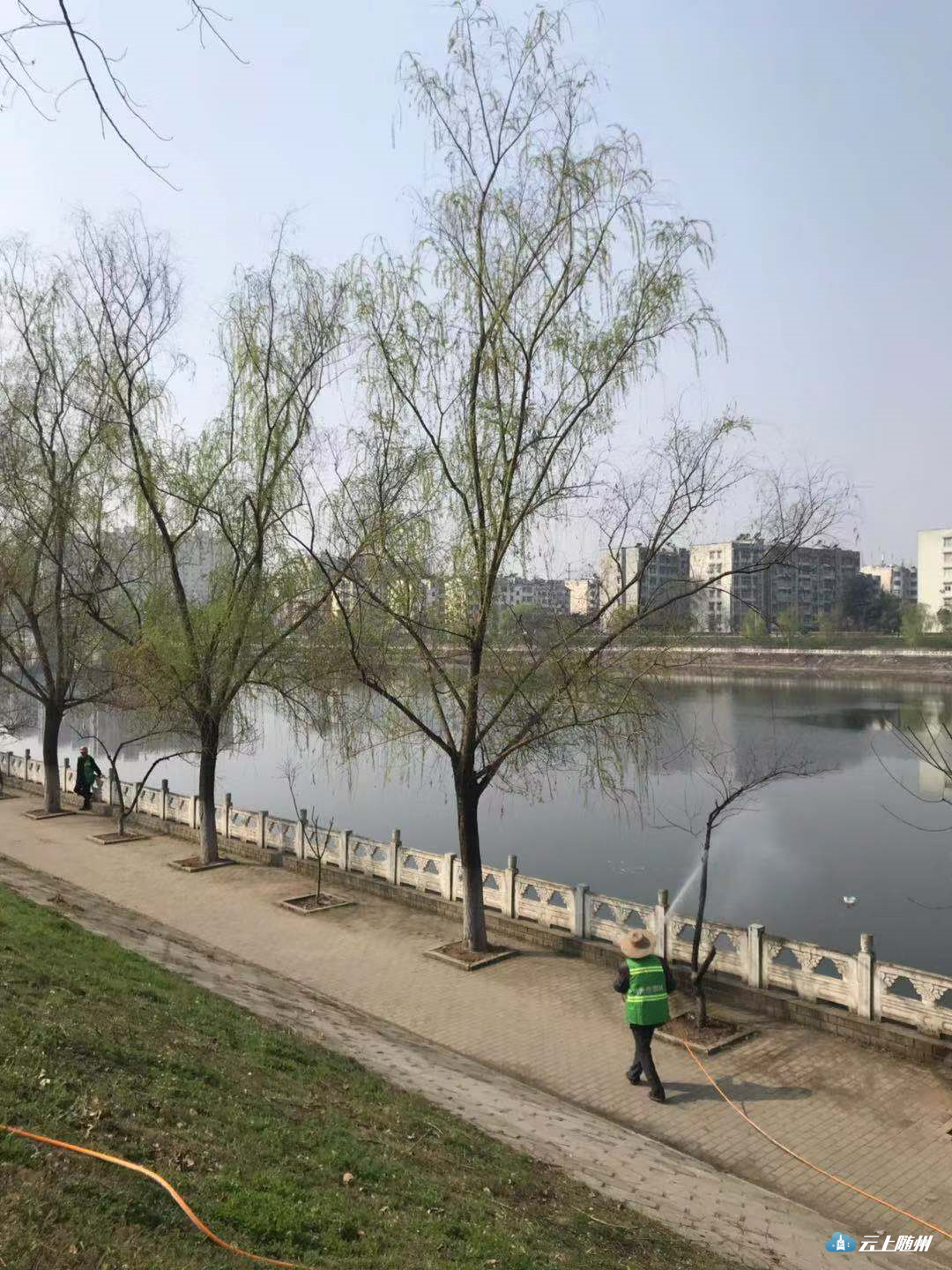 为了保证绿化成果,开春以来市绿化管理处早安排早部署,在采取常规的病虫害防治基础上,又引进喷洒叶面新药品,对一河两岸垂柳顽固天牛病虫害进行防治。