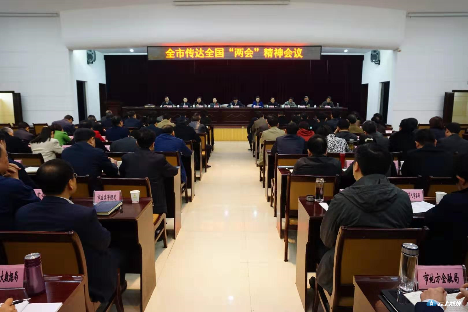 市长郭永红、市政协主席黄志群分别传达全国两会有关精神。市领导郑军、夏卫东、林常伦、甘国栋、冯茂东、张卫、刘宏业出席会议。