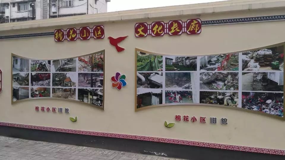 现在棉花小区大院被清理一空,并改造成停车场,路面重新刷黑、楼道垃圾全被清走,安装了监控探头,墙面重新粉刷并改造成文化墙,墙上还特意张贴了改造前的历史照片。